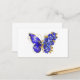 Joyería, azul, zafiro, mariposa floral brillante con ala decorada con flores azules y preciosas con hojas de oro sobre fondo blanco.