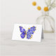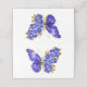 Joyería, azul, zafiro, mariposa floral brillante con ala decorada con flores azules y preciosas con hojas de oro sobre fondo blanco.