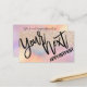 Esta es la tarjeta de cita perfecta para un negocio moderno, elegante y moderno. Este diseño presenta una tipografía de moda, cincelada y pincelada negra de bonito sobre un purpurina dorado glamoroso y giradamente impreso con fondo de gradiente holográfico rosa, melocotón, azul y violeta iridiscente. Estas tarjetas le añadirán ese toque personal y profesional a su publicidad de negocios y de carrera. ***NOTA DE DISEÑO IMPORTANTE: Para cualquier solicitud de diseño personalizado, como solicitudes de productos coincidentes, cambios de color, cambios de posición o cualquier otra solicitud de cambio, haga clic en el botón "CONTACTO" o envíe un correo electrónico al diseñador directamente a lafemme.art@gmail.com. Incluso puede enviarle un correo electrónico solicitando un diseño completamente personalizado y nuevo.