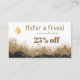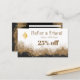 Gold and black Salon Referral Card. A sleek and minimal Beauty Salon design that brings simplicity and elegance together. Perfect for modern salons, makeup studios, and spa services. Personalize easily to match your style and give your business a polished and professional appearance.