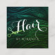 Salón de pelo / Hairstylist/ Hairdresser / Salón de belleza / Artistas de maquillaje / Estilistas / Planificadores de bodas / Organizadores de eventos / Consultores / Propietarios Boutique / Plantillas de tarjetas de cita de Fashionistas - Modernas Tijeras de Relieve metalizado dorado verde sobre el elegante fondo del patrón de pelo verde y azul.