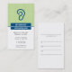 Una oreja azul profundo estilizada se sienta sobre un fondo verde claro y sutil. Perfecto para los otolaringolólogos, audiólogos o casi cualquier negocio relacionado con el oído y/o la audición. Deje la espalda tal como está con la información de la cita o personalizar a su gusto. Disponible en colores alternativos con productos coincidentes.