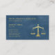 Tarjetas de visita de la firma de nombramientos de abogados azules. Tarjetas de visita profesionales y elegantes de la empresa de derecho jurídico. Presenta un logotipo dorado (impresión plana no Relieve metalizado), detalles firmes y personales, tarjeta de cita en la parte posterior. El color de fondo se personaliza fácilmente. Abogado perfecto en tarjetas de abogados. Diseñado por http://www.superdazzle.com Nombramiento