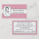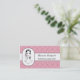 Un peluquero mod rosa y negro art deco estilo peluquería y salón de belleza cita tarjeta de visita para la artista profesional de maquillaje con un dibujo vintage de una hermosa mujer empolvando su cara con un suave puff en polvo rosa. Este diseño de fondo geométrico rosado se puede personalizar añadiendo el nombre del cosmetólogo o esteticista certificado.