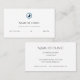 Una tarjeta de visita profesional para un recordatorio de cita para una optometría moderna con un sencillo logotipo de iris de globo ocular azul. Personalice agregando el nombre de su clínica y sus credenciales.