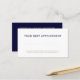 Asegúrese de que sus clientes nunca pierdan una reunión con nuestras sencillas tarjetas de recordatorio de citas profesionales. Con un intemporal esquema de color azul marino y oro, esta tarjeta de personalizable es perfecta para abogados, bufetes de abogados, planificadores inmobiliarios, asesores financieros y cualquier empresa de servicios profesionales. El diseño minimalista ofrece un amplio espacio para los detalles esenciales, mientras que la tipografía clásica exuda sofisticación y confianza. Ya sea que esté en derecho, finanzas u otros servicios profesionales, esta versátil tarjeta puede ser diseñada para adaptarse a la identidad única de su marca. Destacar con un diseño que refleja su compromiso con la excelencia y el servicio personalizado.