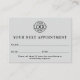 Mantenga a sus clientes organizados y puntualmente con esta tarjeta de cita moderna y personalizado. Con un sencillo diseño de Gris claro, es perfecto para empresas que buscan mantener un aspecto profesional y minimalista. Personalízalo con el logotipo de tu empresa, detalles de contacto e información de cita para crear una tarjeta de marca que refleje tu negocio. Ideal para pequeñas empresas y marca corporativa.
