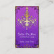 Tarjetas de visita sofisticadas modernas del salón del diseñador que ofrecen una lámpara brillante en tonos púrpuras y rodeada por flourishes del metal plateado y arte negro del adorno y con forma de cinta. El fondo de esta tarjeta es una perla hermosa como textura. Destaqúese de la muchedumbre y haga una declaración con estas tarjetas. El personalizar con su información personal y muestra apagado su lado con clase, moderno para cualquier negocio!. Creado y Copyright Julia 2012 Farrell una ropa más enrrollada, más linda y fresca y regalos disponibles en las compras felices de www.zazzle.com/oddlotpaperie. © el 2012% el pipe% Julia Farrell el | todos los derechos reservados