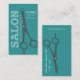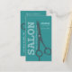 La tarjeta de visita artística moderna del ilustracion del filo con el corte del estilista del salón de pelo scissors. El verde azul modificado para requisitos particulares, los colores suavemente azules y grises con la disposición vertical nerviosa da una identidad visual elegante de moda a este diseño intrépido de la tarjeta de visita de la plantilla de la disposición. Una opción intrépida de la cita del salón para el negocio del balneario de la belleza de sus mujeres.