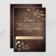 Elegante, moderno y rústico carnet de detalles de boda de madera con sitio web, encaje dorado con flores y luces de cuerda. Ideal para bodas en otoño o invierno.