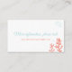 Avísense de los detalles de su boda con esta tarjeta de Boda Seahorse, especialmente para aquellos que quieran guardar papel y franqueo. Esta tarjeta presenta colores acuáticos y corales para el arrecife de coral y burbujas de aire, junto con la redacción en color sobre fondo blanco que coincide con la "suite Boda Seahorse". La parte trasera de esta tarjeta tiene un patrón de caballito de mar sobre fondo acuático. Si desea cambiar los diferentes elementos, como el color de fondo, las fuentes y el tamaño, pulse en la opción "personalizar más". ¡Muy fácil de hacer!