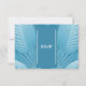 Crear tarjetas RSVP de boda modernas y cautivadoras. Presenta hojas tropicales en tonos de color verde azulado. Se utiliza para complementar temas de bodas tropicales y eventos especiales usando el azul verde azulado como color focal. La parte delantera de la tarjeta tiene el término "RSVP". En la parte trasera se pueden ver cuatro de tus fotos favoritas junto con los detalles de la respuesta. También hay un código QR que puede utilizar para su RSVP, registro de bodas (entre otros). Utilice la plantilla para personalizar.
