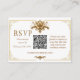 **Elegante tarjeta QR Royal Gilded RSVP** Pasar al mundo de la sofisticación con nuestra exquisita tarjeta RSVP con código QR en crema y oro, meticulosamente diseñada para armonizar con nuestra lujosa suite de invitados a una boda. Esta tarjeta RSVP no sólo es un faro de elegancia clásica sino también un guiño a la comodidad moderna. La carta, elaborada con la mejor atención a los detalles, presenta un diseño floral ornamentado que hace eco del diseño intrincado de la invitación original. Los ricos acentos dorados en un entorno cremoso crean una sensación de opulencia, invitando a los clientes a participar en la grandeza de su día especial. En el centro de la tarjeta se encuentra un código QR perfectamente integrado, que ofrece a los huéspedes una forma sencilla de confirmar su asistencia. Un simple escaneo los lleva a un sitio web de bodas a medida, donde pueden encontrar todos los detalles de sus próximos nupcias y compartir su emoción. Esta tarjeta RSVP no es solamente una solicitud de asistencia; es un querido placer recordarle a sus invitados el encantador evento que viene. Garantice una primera impresión memorable y un impacto duradero con nuestra tarjeta RSVP de código QR en crema y oro, el preludio perfecto para su historia de boda.