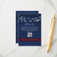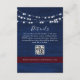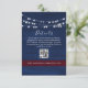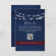 Elegante tarjeta de gabinete boda azul marino con luces de cadena blanca y espacio para detalles personalizados y un código QR. Dirige fácilmente a los huéspedes a su sitio web boda, página RSVP, o información importante como direcciones de recepción y alojamiento. La franja de Borgoña añade un toque rústico y romántico. Compite con las suites de boda de la marina y de Borgoña.