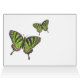 Este diseño presenta una mariposa de cola de torso con marcas rosas y verdes y un tejido celta en las alas y el cuerpo. Un ala muestra el tejido en negro y el otro en las marcas rosa y verde. La tarjeta presenta un interior en blanco para mensajes personalizados. También está disponible en un tamaño de tarjeta de nota más pequeño.