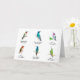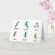 Tarjeta de saludo de Bonito con Hummingbirds, Rufous, Violetear Mexicano, Allen, Broad-billed y Anna's Hummingbirds con un fondo blanco.