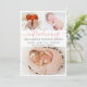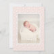 Anuncio de nacimiento de bebé 3 tarjetas de Collage de fotos. Elegante minimalista lindo anuncio de nacimiento con 3 de tus fotos favoritas de bebés delante, con un texto con letras a mano de bonito "presentando" en un guión de caligrafía rápida con mezcla o cruz de rosa rubor. Añada el nombre de su bebé al frente y las estadísticas de nacimiento. En la parte trasera hay una foto vertical de un bebé con puntos blancos de fondo rosa suave. Puede personalizarlo fácilmente.
