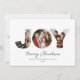 Una tarjeta de vacaciones con un gran collage de fotos y letra de alegría en una fuente negrita simple sobre una tarjeta blanca. Personaliza esta tarjeta con 3 fotos y un saludo personalizado.
