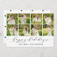 La hermosa tarjeta de vacaciones con fotos basada en tipografía presenta ocho de tus fotos familiares cuadradas favoritas en un diseño de collage. "Felices Fiestas" aparece en el centro en tipografía negra a mano. Personaliza con tu saludo personal y los nombres de tu familia. Las tarjetas se revierten a un patrón de lunares.