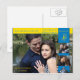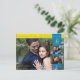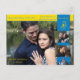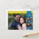 Una postal de compromiso con el tema amarillo y azul. Cambia las fotos a la tuya.