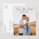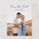 Tarjeta de compromiso con foto y letra moderna. La parte trasera incluye detalles adicionales. Haga clic en el botón de edición para personalizar este diseño con tus fotos y detalles de la boda.