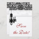 Elegante tarjeta de compromiso de boda con hermoso patrón de damasco de araña. Para ver toda esta línea, simplemente escriba chandelierbw en el campo de búsqueda.