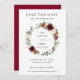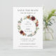 Esta elegante tarjeta de compromiso de boda cuenta con un hermoso wreath floral de acuarela en marfil, naranja quemada, rosa y borgoña. Diseñada para coincidir con nuestra colección de bodas Rustic Blooms. Personalízala con tus detalles de manera fácil y rápida, simplemente presiona el botón de personalizar para reorganizar y dar formato al estilo y ubicación del texto. (c) The Happy Cat Studio