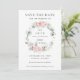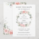 Esta elegante tarjeta de compromiso de boda cuenta con una hermosa corona floral de acuarela en rosa suave. Diseñada para coincidir con nuestra colección de bodas Blossoms. Personalízala con tus datos de manera fácil y rápida, simplemente presiona el botón de personalizar para reorganizar y dar formato al estilo y ubicación del texto. (c) The Happy Cat Studio