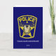 Tarjeta de Condolencia de Oficial de Policía. El panel frontal de esta tarjeta está decorado con un magnífico cuadro de un águila calva estadounidense y las palabras "Con Condolencias sentidas". El interior está decorado con una bandera ceremonial de los Estados Unidos en un puesto y las palabras "Consuelte en conocer a tu querido, sirvió a nuestro país, estado y comunidad, con distinción y honor. "El panel posterior está decorado con el distintivo de la policía.