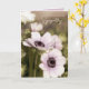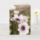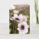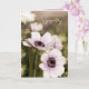 Fotografía de flores de amapola anemone moradas con efecto vintage suave impresa en esta tarjeta de condolencias totalmente personalizable con el texto “Pensando en ti en este momento difícil” impreso en el interior que puedes conservar, reemplazar o eliminar si lo deseas.