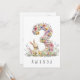 Haz que el tercer cumpleaños de un pequeño sea especialmente especial con esta encantadora tarjeta, que presenta una delicada ilustración de acuarela del número 3, bellamente elaborada con diminutas flores pastel de colores. Un conejito lindo se para junto al número, mordisqueando juguetonamente las flores, lo que añade un toque de dulzura y alegría al diseño. Ya seas un padre, abuelo o amigo de la familia, esta encantadora tarjeta seguramente traerá una sonrisa tanto al pequeño como a sus seres queridos.
