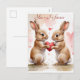 Una dulce tarjeta de acuarela con dos conejitos encantadores sosteniendo un corazón. Un regalo maravilloso para tu ser querido en el Día de San Valentín o cualquier ocasión especial.
