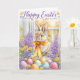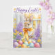 Tarjeta de conejo de Pascua feliz en acuarela | Fl