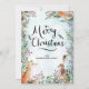 Una encantadora tarjeta de Navidades invernal de bosques te da tus deseos de Feliz Navidad. Un zorro, un conejo y un pájaro están enclavados en follaje de Navidades y bayas. Se está cayendo una nieve ligera. Feliz Navidad está escrito en una caligrafía lujosa. Dos líneas a continuación le permiten personalizar de su mensaje.