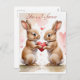 Una dulce tarjeta de acuarela con dos conejos encantadores sosteniendo un corazón. Un regalo maravilloso para tu ser querido en el Día de San Valentín o cualquier ocasión especial.
