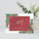 Estas hermosas tarjetas de respuesta para bodas presentan un diseño boho chic elegante y rústico con ramitas pintadas a mano de hojas y bayas de acebo en acuarela, así como ramas de pino y piñas en un fondo rojo carmesí marmolado con un borde dorado de falso foil. El tema navideño hace que estas tarjetas sean perfectas para una boda o celebración de Navidad. El reverso es un formulario para que tus invitados lo rellenen y devuelvan indicando si asistirán, el número de invitados que traerán y su elección de comidas. También hay espacio para la URL de tu sitio web para que tus invitados puedan responder en línea si les resulta más fácil.