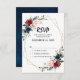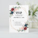 Tarjeta De Confirmación De Asistencia Acuarela Burgundy Azul Marino Floral Geométrico
