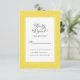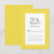 La tarjeta de respuesta de detalles de la invitación de boda amarilla presenta un borde hermoso y chic en un tono amarillo iluminado de moda que incluye un borde blanco pequeño y elegante. La caligrafía y el texto son de color gris carbón sobre un fondo blanco. Una plantilla moderna para la fecha y el año complementa el diseño único de caligrafía. La parte posterior de la tarjeta es de color amarillo sólido.