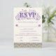 An elaborately detailed Art Nouveau design featuring a pattern of lilac lovebirds and lavender butterflies in profile perched atop scrolling vines of purple thistle on a pale yellow background. A pairing of elegant fonts has been carefully selected to accompany this card's decorative floral text, however, they can be changed to meet your needs. You can also change their wording and colors, as well as the color of the RSVP text, and hide any unnecessary choices in the editing panel.