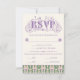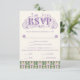 An elaborately detailed Art Nouveau design featuring a purple thistle scroll and vine striped pattern on a light yellow background with intricate yellow details. A pairing of elegant fonts has been carefully selected to accompany this card's decorative floral RSVP text, however, they can be changed to meet your needs. You can also change their wording and colors, as well as the color of the RSVP text, and hide any unnecessary choices in the editing panel.