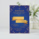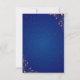Completa tu elegante suite de papelería de boda azul y dorada con esta lujosa tarjeta de RSVP que presenta un sofisticado detalle en las esquinas doradas. Diseñada para coordinar perfectamente con el conjunto de invitaciones, esta tarjeta de respuesta permite a los invitados confirmar su asistencia con estilo.
