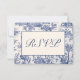 Presentamos elegantes y atemporales tarjetas de respuesta para invitaciones de boda. El delicado toile azul y blanco es un clásico atemporal para tu boda. Busca las otras hermosas piezas de esta colección.