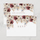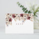 Preciosa tarjeta de respuesta de boda con flores de acuarela borgoña y blanca, con hermosas rosas blancas de acuarela y amapolas de borgoña profundas.