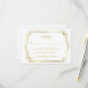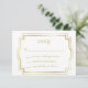 Tarjeta de confirmación de asistencia blanca y dorada. El marco y las letras de falso foil dorado hacen que este sea un diseño elegante para acompañar cualquier invitación