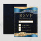 Tarjeta De Confirmación De Asistencia Blue and Gold Glam Lears Bokeh Boda