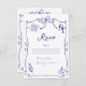 Tarjeta RSVP de matrimonio azul dibujada a mano extravagante