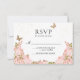 Tarjeta De Confirmación De Asistencia Blush Pink Floral Gold Butterfly Quinceanera