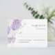 Esta elegante tarjeta de respuesta RSVP presenta flores suaves de lavanda y lila combinadas con delicadas hortensias blancas, creando un aspecto romántico y refinado para el conjunto de papelería de su boda.