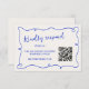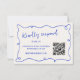 Tarjetas RSVP de boda lúdicas y divertidas con un código qr. Esta tarjeta de respuesta presenta un marco de acequia de color azul cobalto dibujado a mano sobre un fondo crudo.