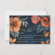 Un diseño lujoso de inspiración barroca florece en los ricos azules de medianoche y florales de otoño, perfecto para una atmósfera boda monótona pero romántica. Con un ambiente muy agradable y lleno de encanto vintage, esta disposición floral es ideal para ceremonias de otoño, temas góticos del jardín o para cualquier pareja que busque un tono dramático y elegante. Personalizable con tus nombres y detalles de eventos, te da la primera impresión perfecta para tu gran día.